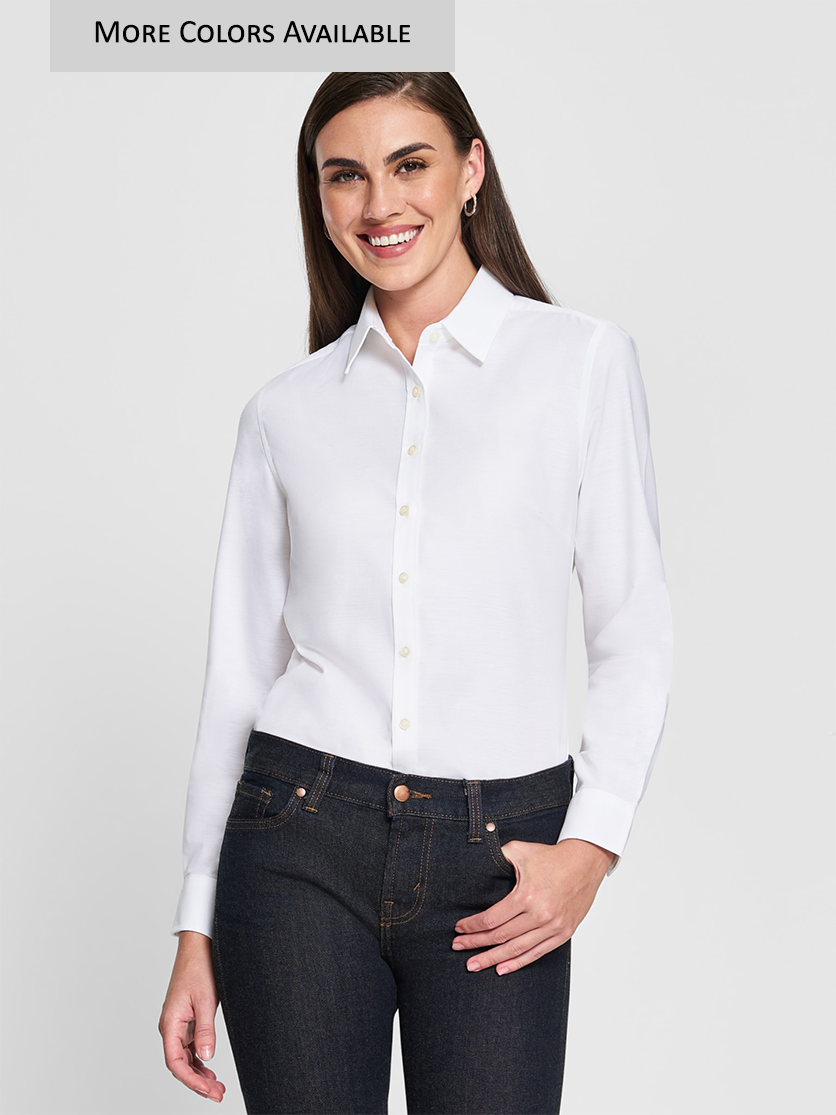 Look your best in a tried-and-true oxford that performs. Designed to resist and release stains, our SuperPro Oxford has a soft hand and a wrinkle-free finish to keep you looking neat and professional all day long.