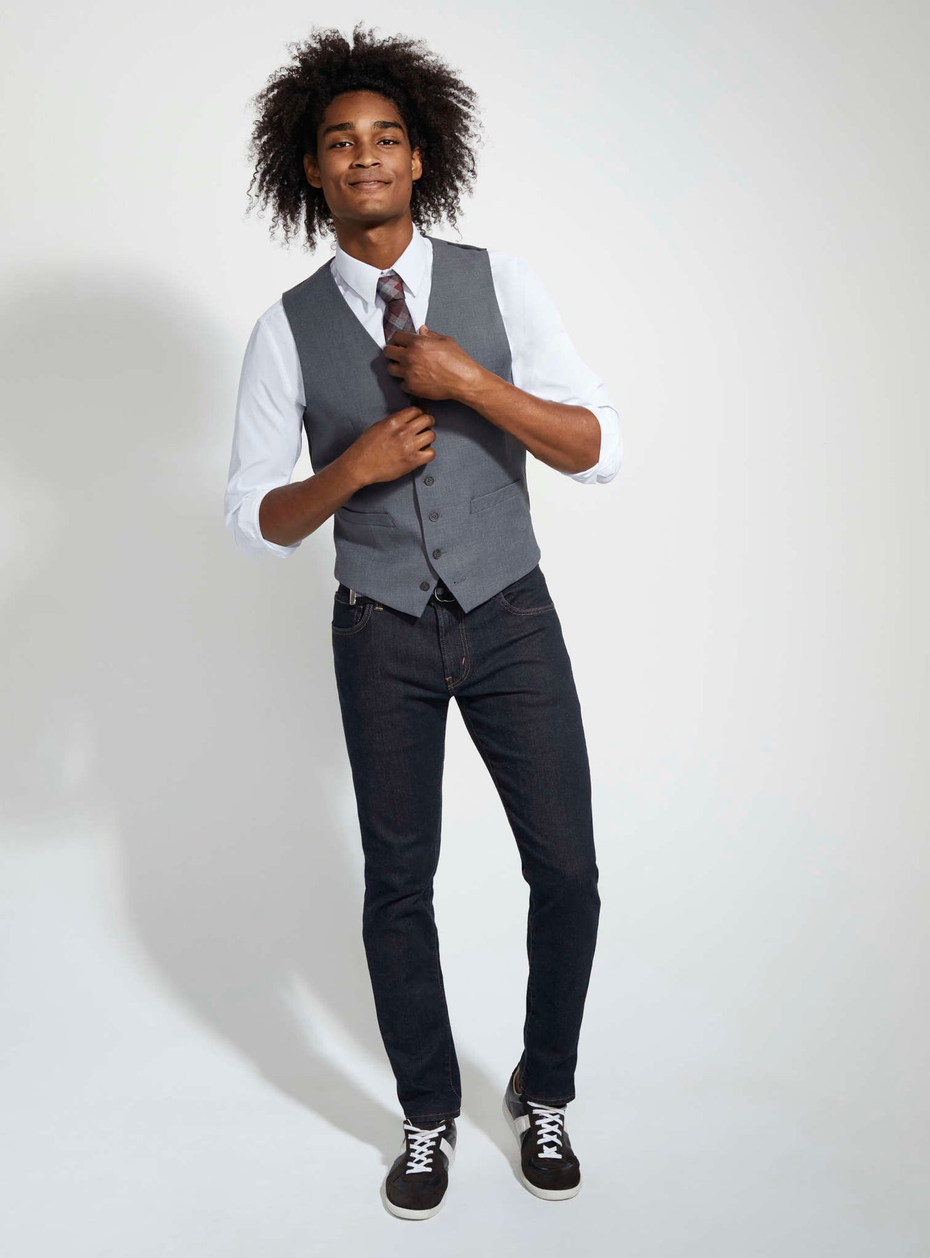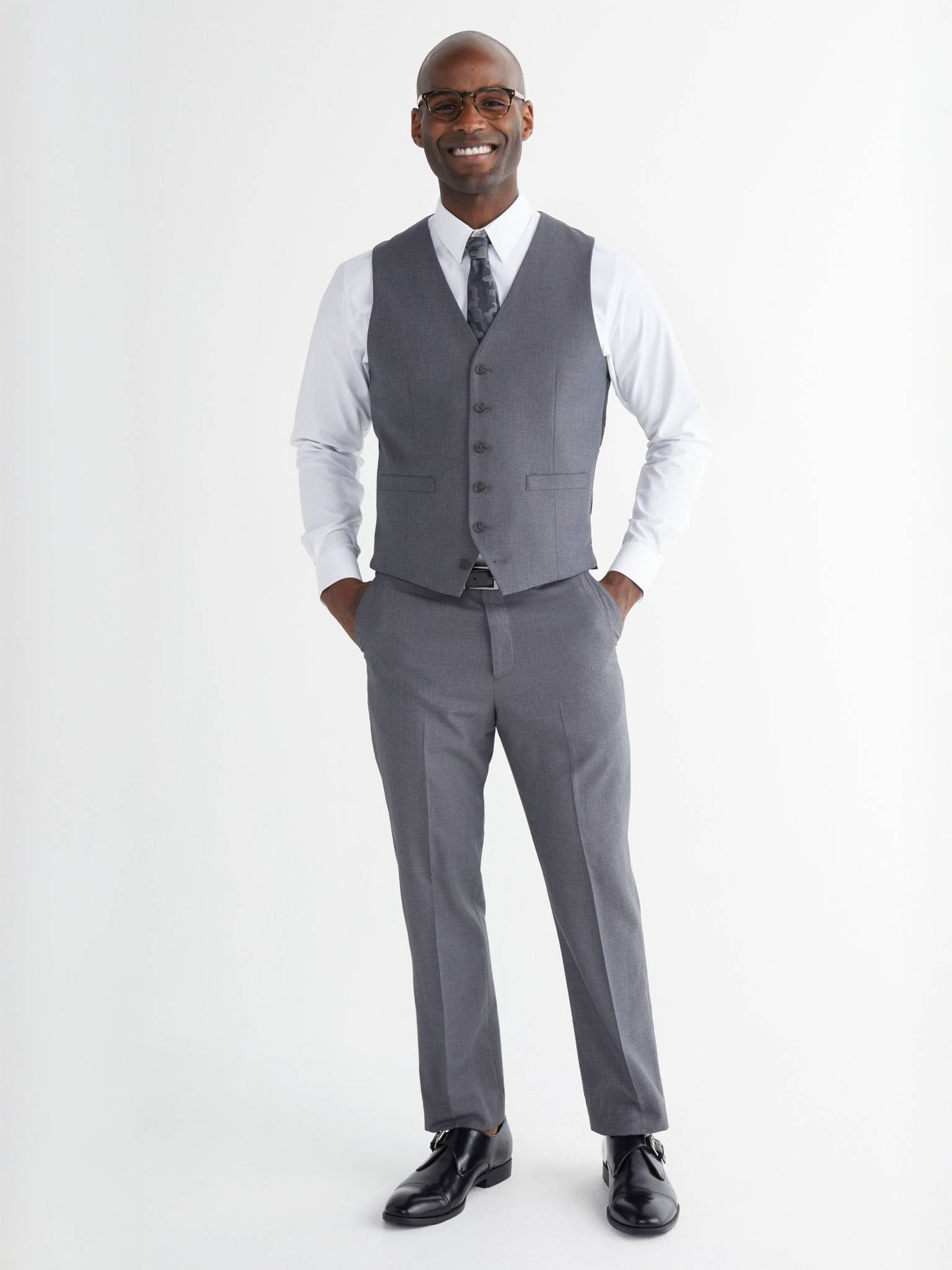 Paired with our James Blazer or on its own, complete your work-bound attire with the tailored James Vest. With classic button-styling, slanted pockets, and adjustable back belt, the James Vest is an understated suiting essential for a sharp look at the office.