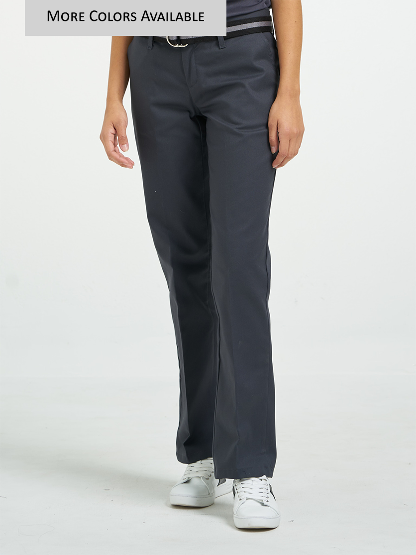 Stay pressed and polished with the Ladies' Dickies Industrial Flat Front Pant, designed with easy-care stain release technology and resistance to fade and wrinkles. The fit comes in slightly below the waist and has extra room in the seat and thigh. The waistband in the straight-leg pants keeps it comfortable with stretch for the perfect fit qualities that will have you making room at the front of your closet for these go-to pants.